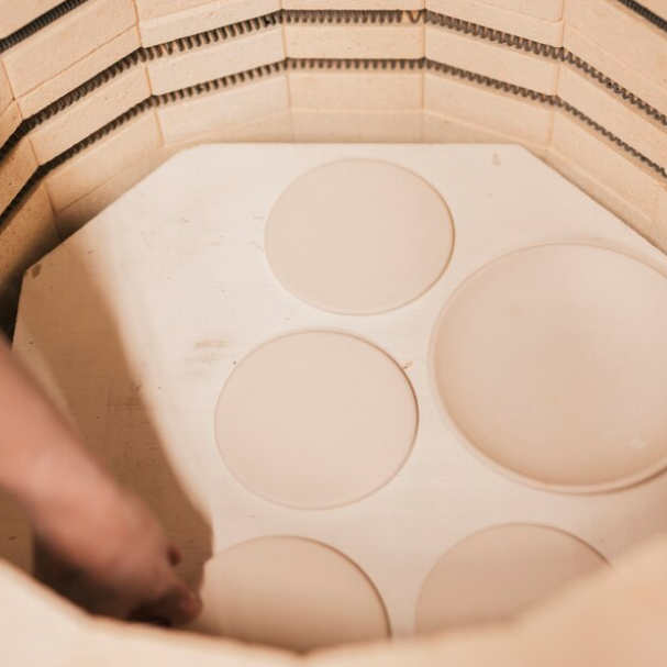 - Todos los materiales necesarios para pintar (pinturas, paleta, esponjas, agua, esmaltes y cocción en horno profesional).